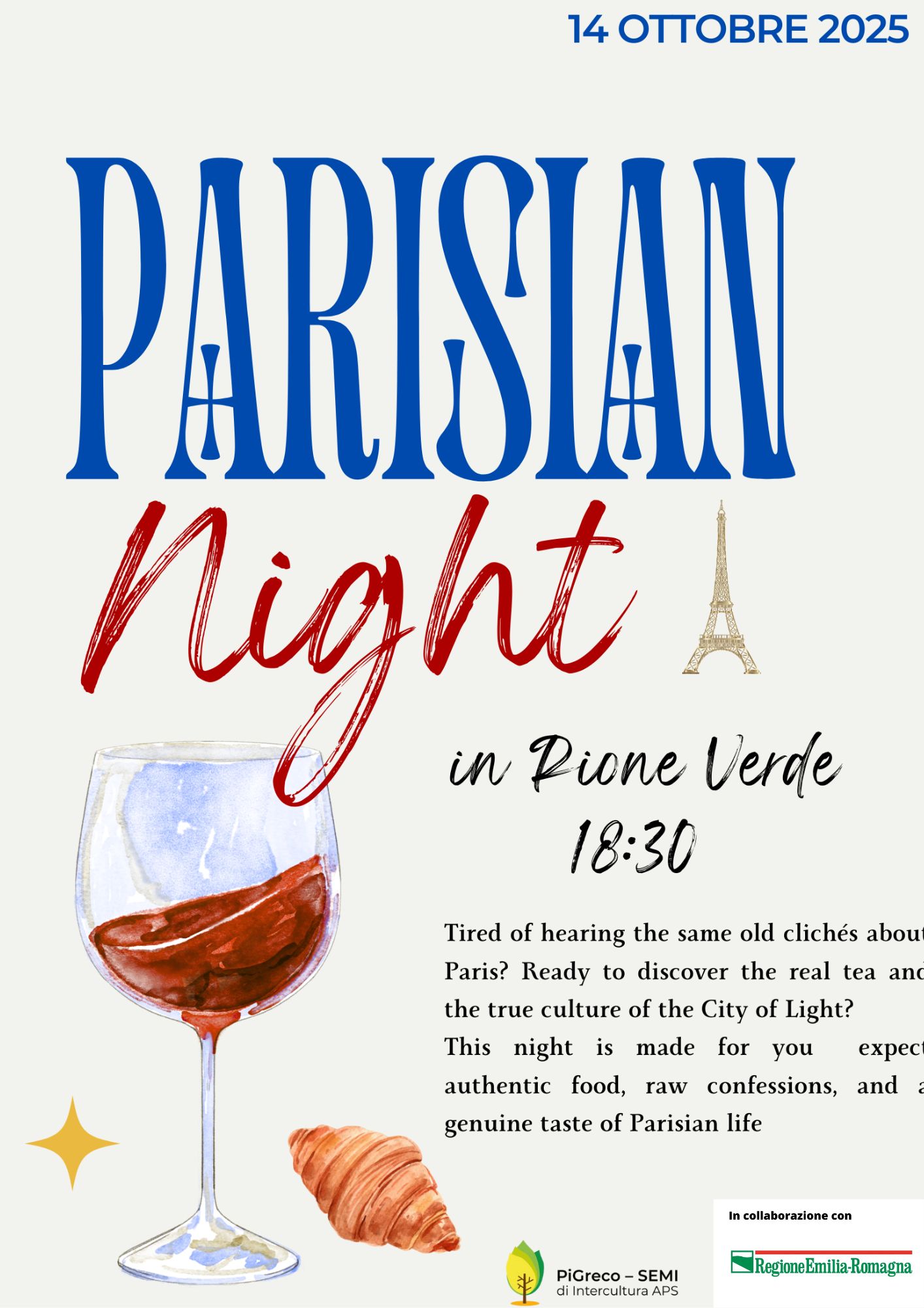 Scopri di piùTi aspettiamo il 14 ottobre 2025 alle ore 18:30 al Rione Verde per una serata speciale dedicata alla scoperta dei segreti della vera Parigi. Tra degustazioni, curiosità culinarie e giochi…